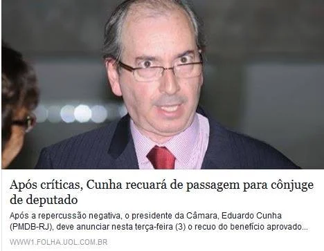 Vejam esta matéria sobre o Cunha, publicada na Folha, por exemplo.